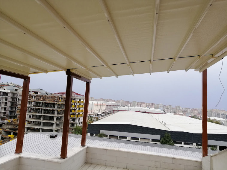 kafelerde pergola çatı olarak kullanımı söz konusudur. Açılıp kapanabilen Pergola sistemler yaz ve kış